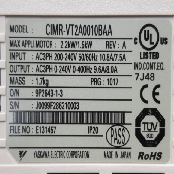 노14993/미사용인버터/CIMR-VT2A0010BAA/3상220V/야스카와 > 인버터