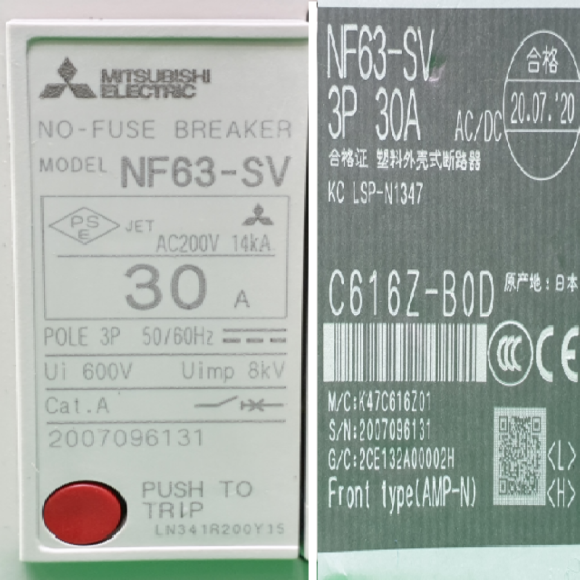 주21010/미사용회로차단기/NF63-SV/3P/30A/미쓰비시 > 전기자재류
