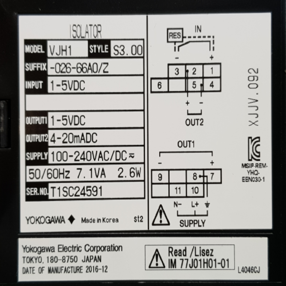 노59010/미사용신호컨디셔너/VJH1-026-66A0/Z/요코가와 > 전기자재류
