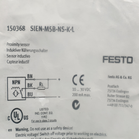 초20955/미사용원주형근접센서/SIEN-M5B-NS-K-L/FESTO > 전기자재류