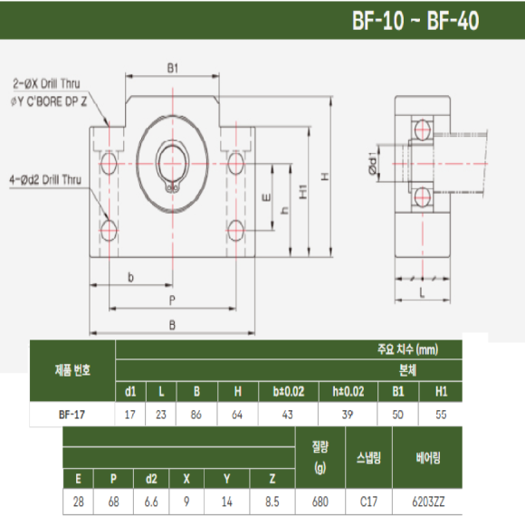 초13621/미사용볼스크류가이드양쪽쁘라켓,서포트유닛,서포트유니트/BF-17/성일