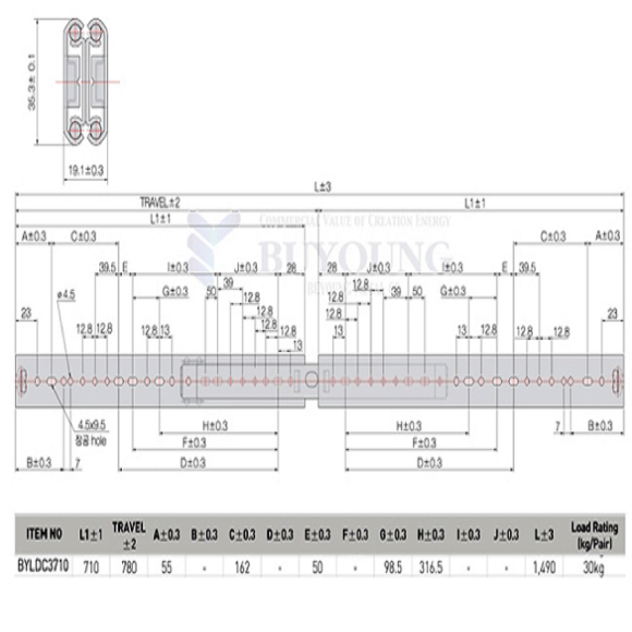 초53013/미사용3단볼레일,서랍레일,가구레일/BYLDC3710