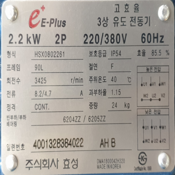 초30096/미사용3마력모터/2P모터/HSX0802261/효성 > 모터류