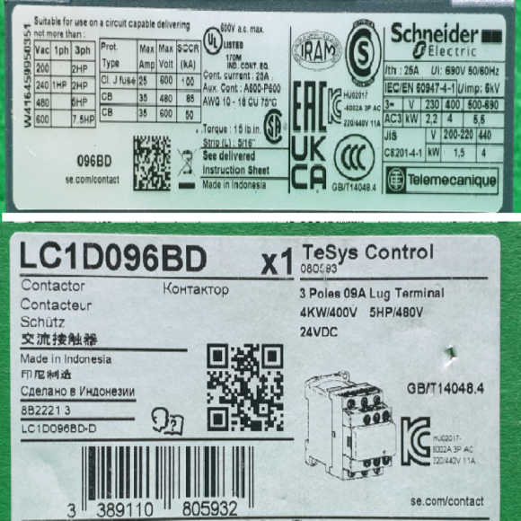 주20979/미사용전자접촉기마그네트/LC1D096BD/DC24V/슈나이더 > 전기자재류