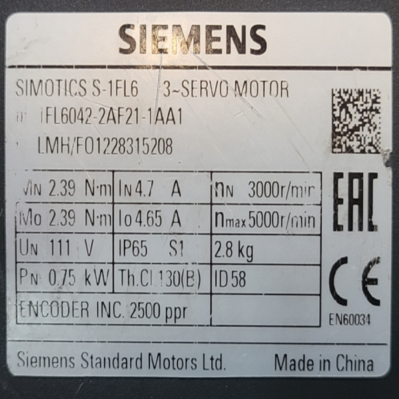 주13068/서보모터/1FL6042-2AF21-1AA1/0.75KW/지멘스