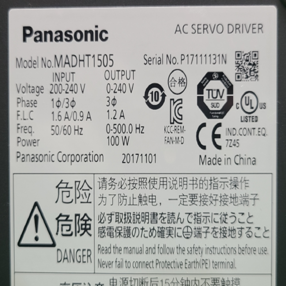 주73016/서보드라이브/MADHT1505/100W/파나소닉 > 서보드라이버
