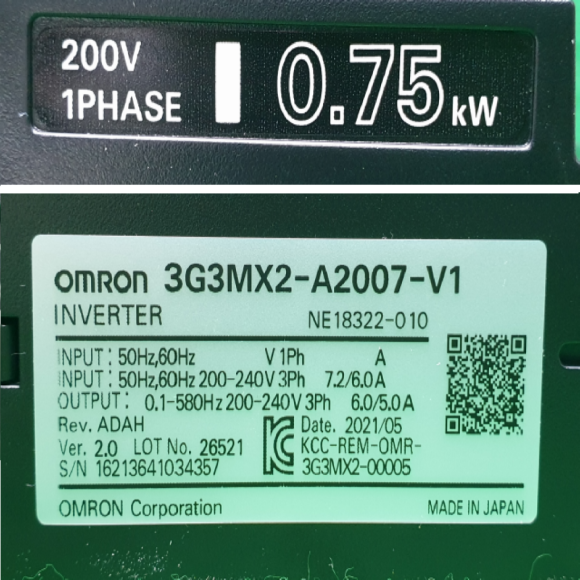 주21029/미사용인버터/3G3MX2-A2007-V1/0.75KW/오므론