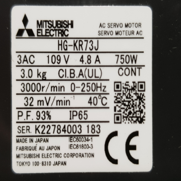 주75313/미사용서보모터/HG-KR73J/750W/미쓰비시 > 서보모터