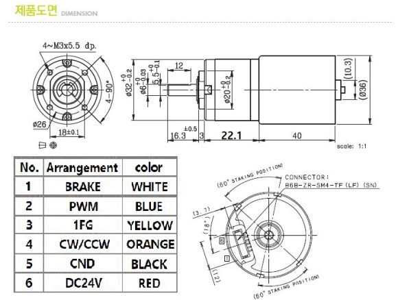 초12393 DC24V 감속기어모터 감속비 1/5 BL3640-24V+IG32