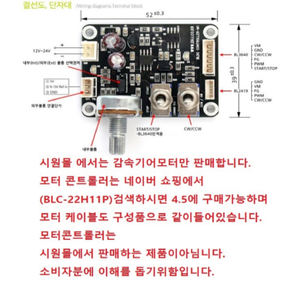 초12395 DC24V 감속기어모터 감속비 1/5 예상모델명BL3640-24V+IG32
