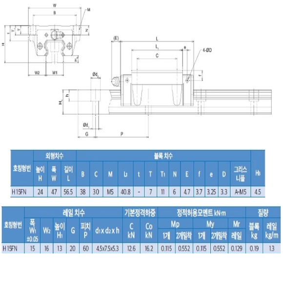 초13669/미사용LM가이드/길이159폭15/H15FN/TBI > LM가이드