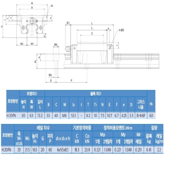 초13670/미사용LM가이드/길이159폭20/H20FN/TBI > LM가이드