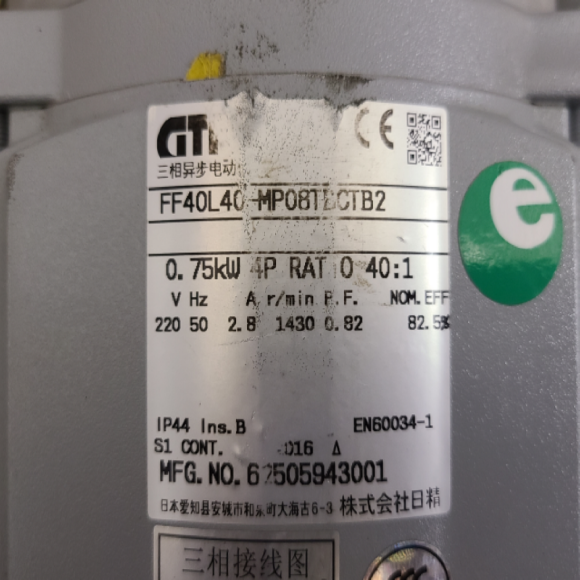 초34577/3상기어드모터/FF40L40-MP08TBCTB2/0.75KW/4P/감속비40대1/GTR