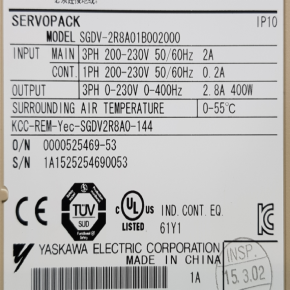 주26210/서보드라이브/SGDV-2R8A01B002000/400W/야스가와