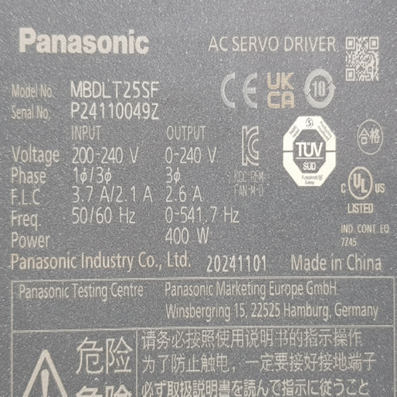 주75419/서보드라이브/MBDLT25SF/400W/파나소닉 > 서보드라이버