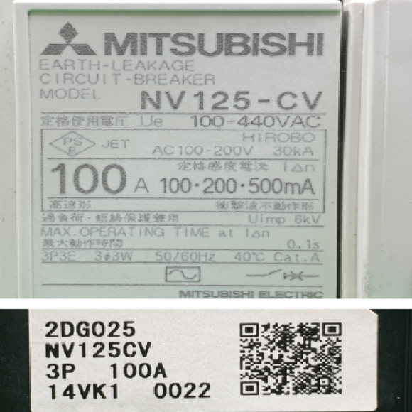 주20951/잔류전류회로차단기/NV125-CV/3P/100A/미쓰비시 > 전기자재류
