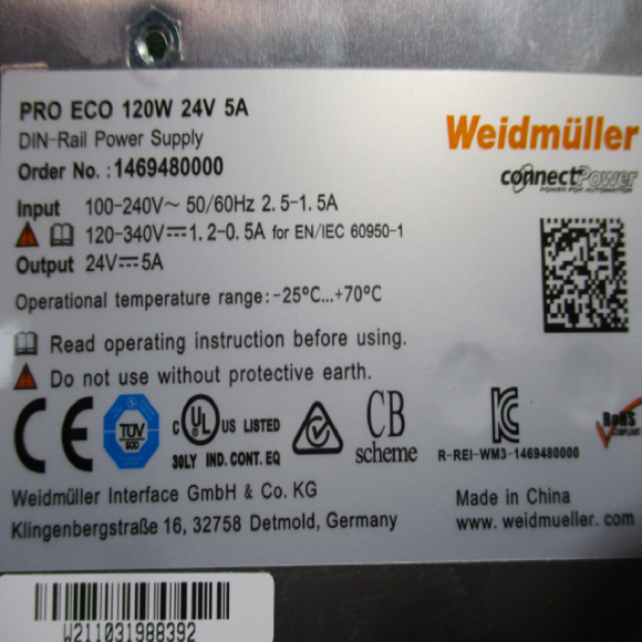 초26067/미사용전원공급장치/파워서플라이/PROECO120W24V5A/Weidmuller