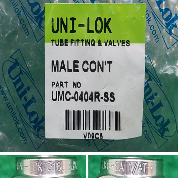 초13186/미사용배관부속유니락스텐튜브피팅밸브/UMC-0404R-SS/5개발송/Uni-Lok
