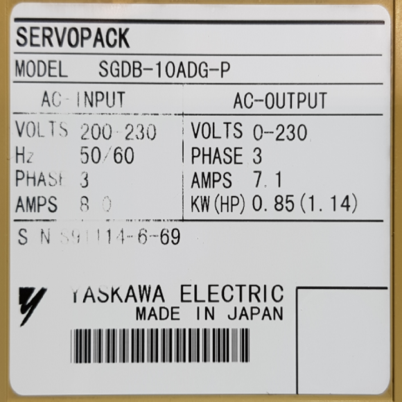 주75309/서보드라이브/SGDB-10ADG-P/0.85KW/야스가와