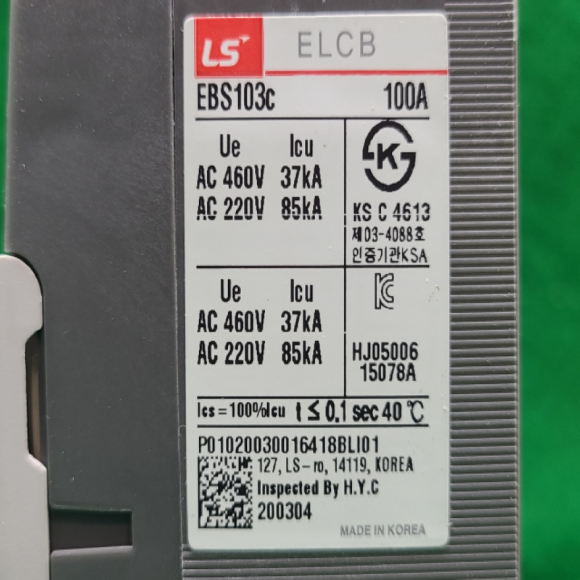 노19022/미사용누전차단기/EBS103C/100A/LS산전 > 전기자재류