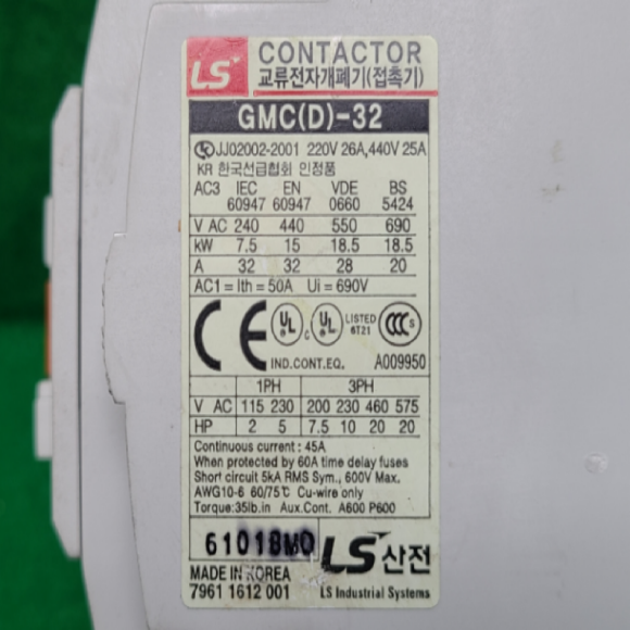 노19145/마그네트,교류전자개폐기/GMC(D)-32/GMC-32/코일전압110V/LS > 전기자재류