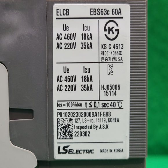 노19024/미사용누전차단기/EBS63C/60A/LS > 전기자재류