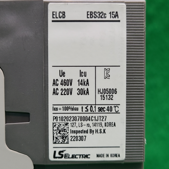 노19034/미사용단상용누전차단기/EBS32C/15A/2P/LS > 전기자재류