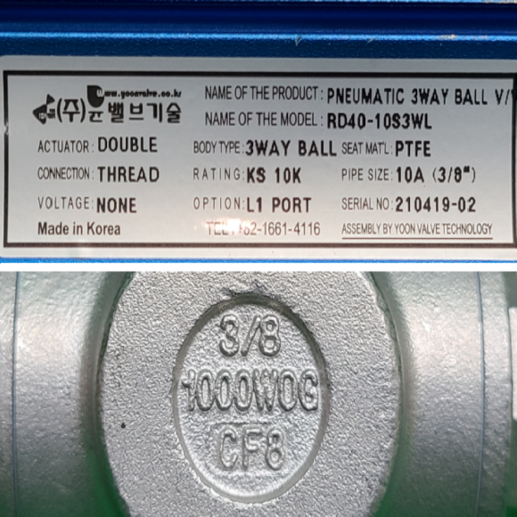 초13568/미사용공압식삼방향밸브/RD40-10S3WL/윤밸브기술